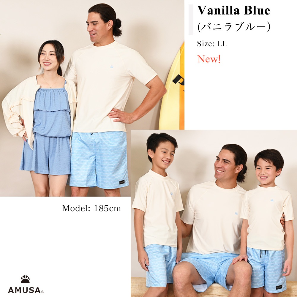 ホワイト、ブルー、バニラのリンクコーデが、極上なリゾート感満載です。
