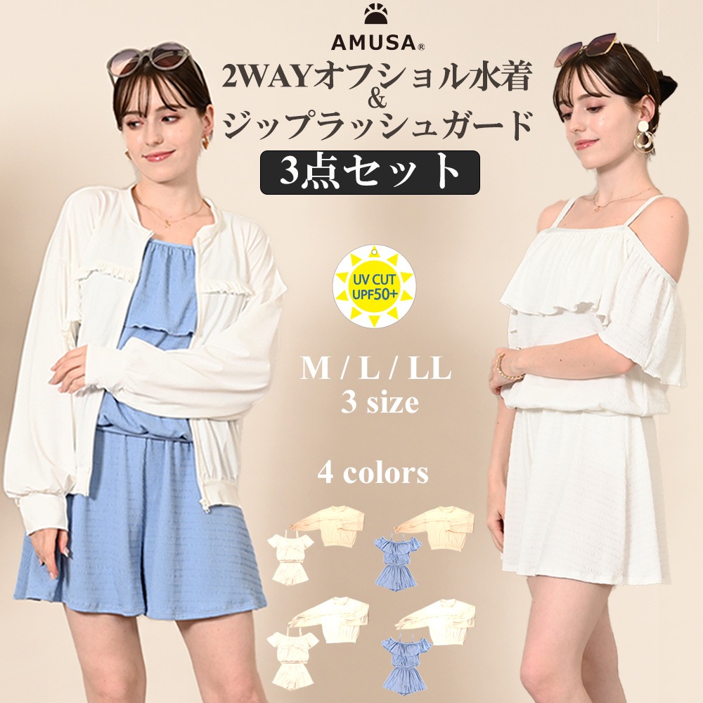 レディースは水陸両用ラッシュガードと2WAYオフショル水着のお得なセット商品(単品でのお取扱いもございます。)